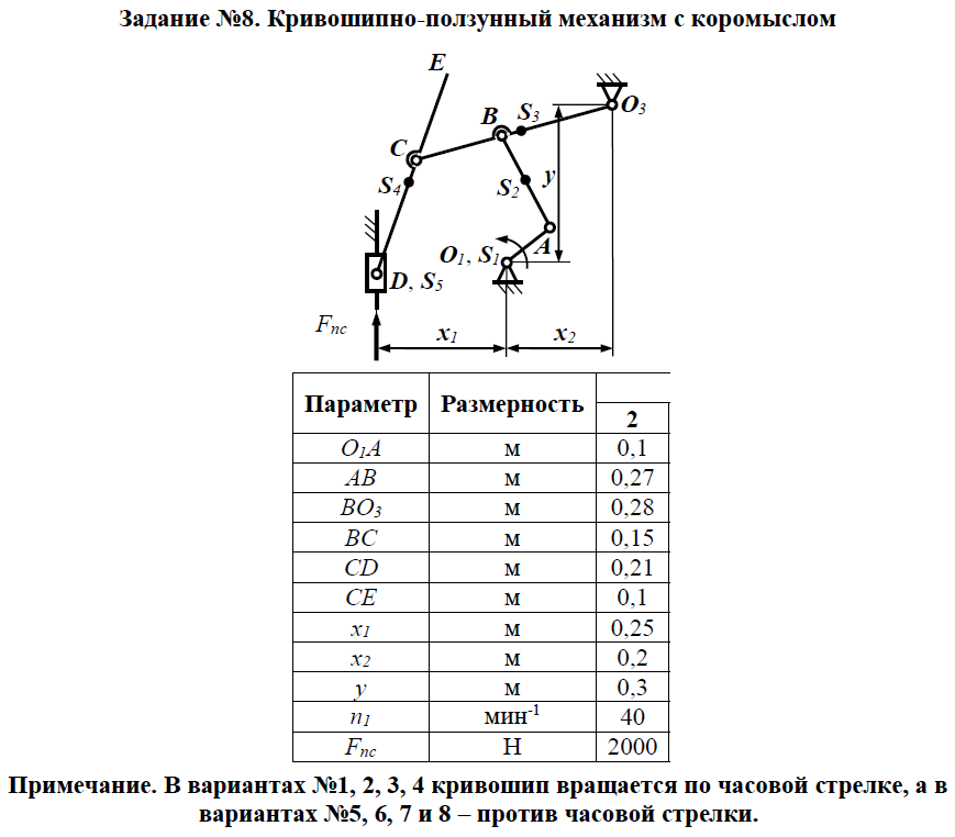 - Задание №8. Кривошипно-ползунный механизм с коромыслом