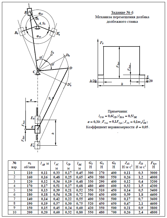 - Задание №6. Механизм перемещения долбяка долбежного станка