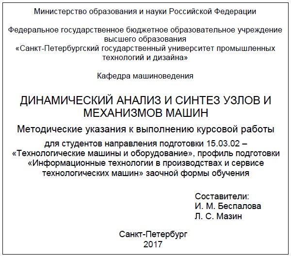 Динамический анализ и синтез узлов и механизмов машин