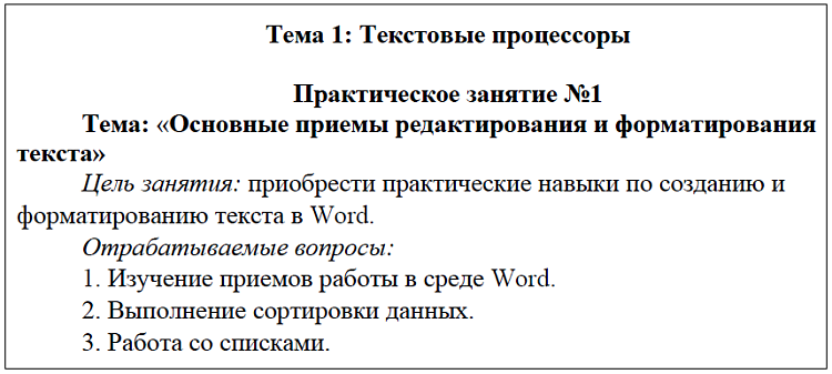- Практическое занятие №1. Основные приемы редактирования и форматирования текста