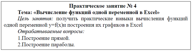Тема: Вычисление функций одной переменной в Excel.