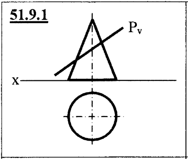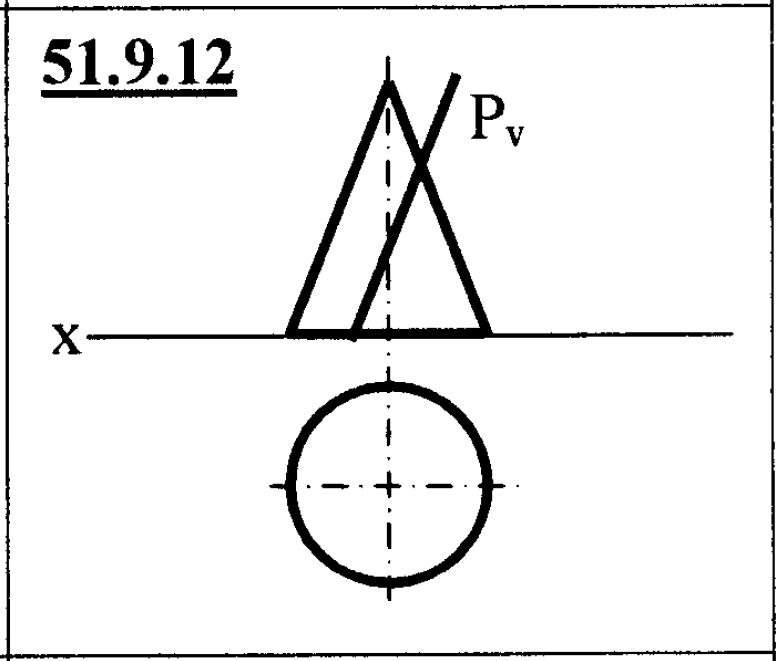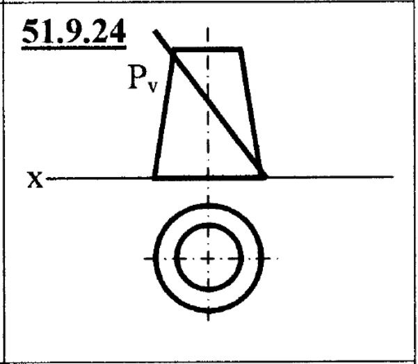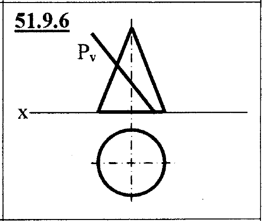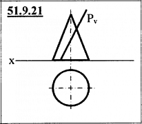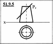 Построить сечение геометрического тела плоскостью Р, построить натуральную форму сечения.