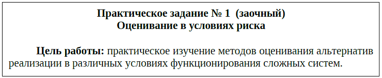 - Практическое задание №1. Оценивание в условиях риска