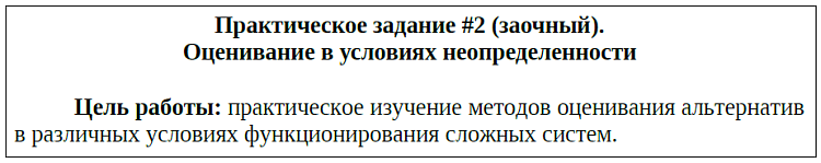 - Практическое задание №2. Оценивание в условиях неопределенности