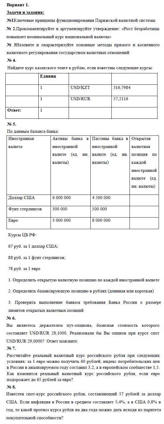 Контрольная работа состоит из 8 заданий